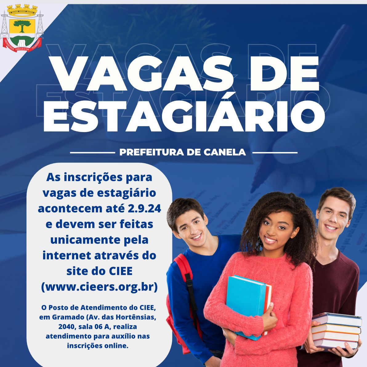 A Prefeitura de Canela está com inscrições para a seleção pública de estagiários. Os estudantes de nível médio, técnico e superior, com idade mínima de 16 anos, podem se inscrever no processo seletivo, que ocorre até 2 de setembro.