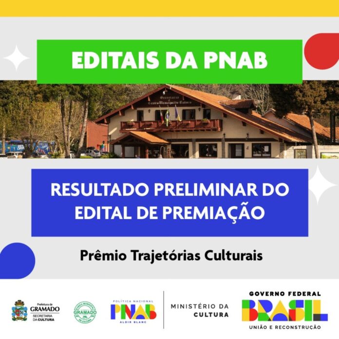 A Secretaria da Cultura de Gramado torna público o resultado preliminar da Etapa de Avaliação e Seleção do Edital de Chamamento Público Nº 23/2024 – Prêmio Trajetórias Culturais, que destina recursos da Lei Nº 14.399/2022 – Política Nacional Aldir Blanc de Fomento à Cultura (PNAB), para premiar agentes culturais que contribuíram significativamente para o desenvolvimento artístico e cultural do município. O edital busca reconhecer a trajetória de artistas e fazedores de cultura em diversas áreas, como música, teatro, artes visuais, cultura afro-brasileira, e outros segmentos, com um aporte total de R$ 91.691,17, distribuído entre 60 vagas.