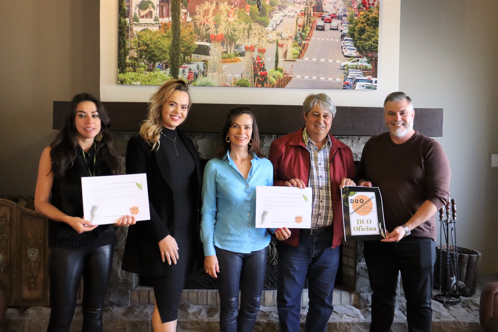 GRAMADO – Na última Sexta-feira, dia 28 de Abril, o premiado Restaurante gramadense Duo Cozinha Contemporânea e o Gabinete da Primeira-Dama, oficializaram uma parceria inédita em prol da comunidade através da Duo Oficina Gastronômica, gratuita. Essa parceria surgiu do desejo do Restaurante compartilhar o Prêmio Travellers’ Choice com a comunidade gramadense. Essa premiação foi concedida através da plataforma Tripadvisor e elegeu o Duo o 4º Melhor Restaurante do Brasil e 7º Melhor Restaurante da América do Sul.