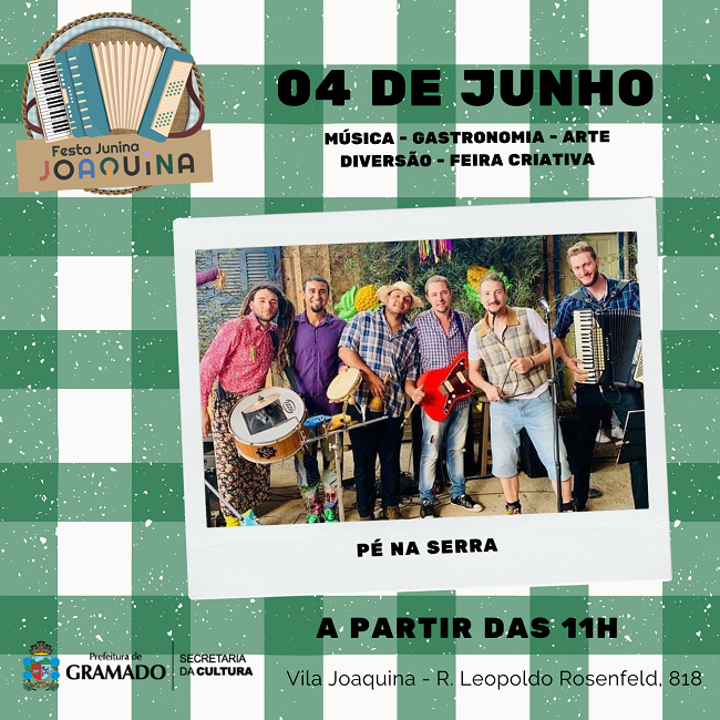 GRAMADO – A partir das 11h do próximo domingo (04) a Vila Joaquina se transforma em um verdadeiro arraial em mais uma Festa Junina promovida pela Secretaria da Cultura. A programação musical do evento ficará por conta dos grupos Pé na Serra e Baião de Cordel.