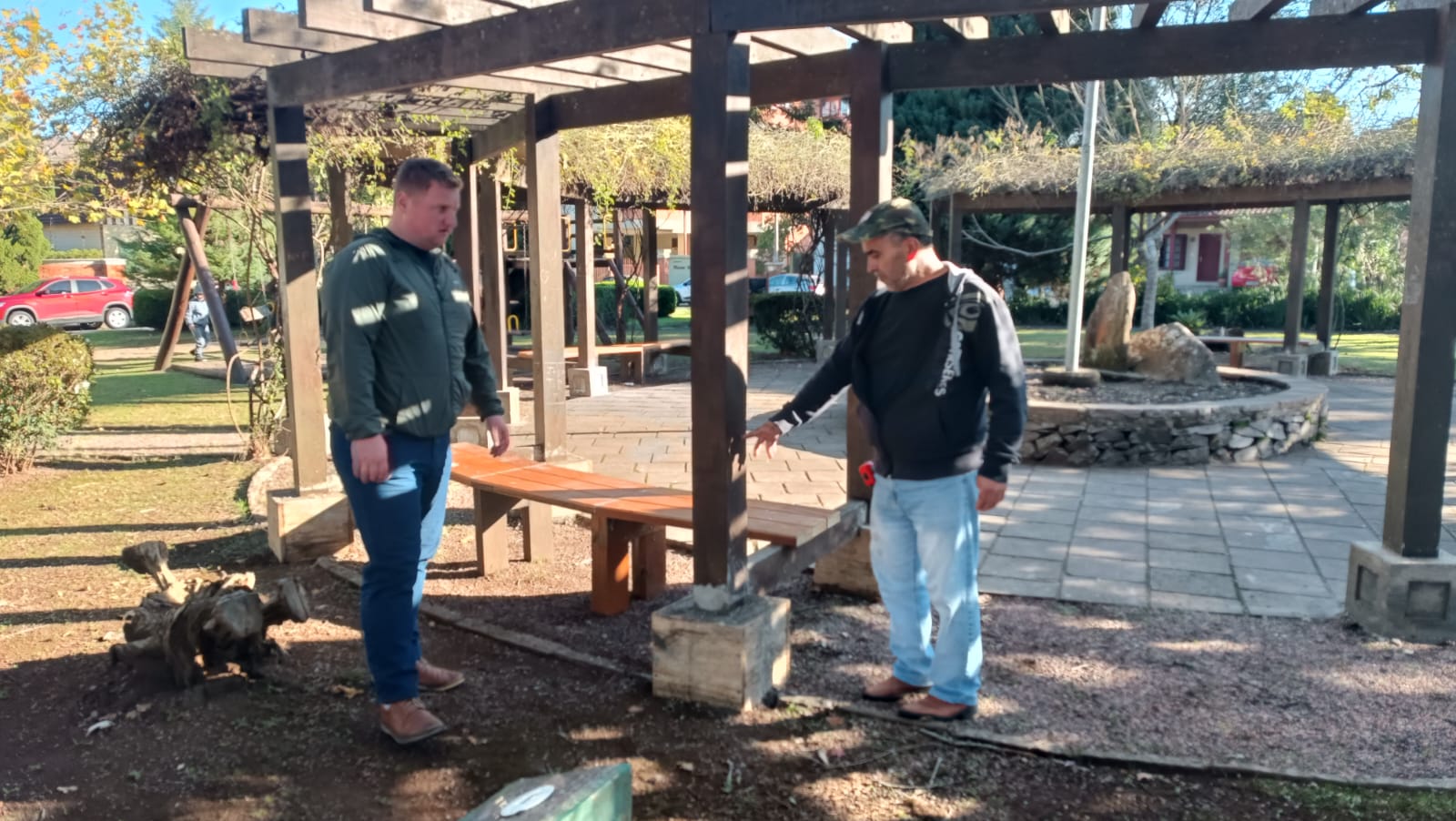 GRAMADO – A Prefeitura, por meio da Secretaria de Esporte e Lazer, trabalha na revitalização da Praça das Rosas, no Centro da cidade. O local recebe novos bancos, pintura do pergolado, instalação de novas lixeiras e implantação de nova praça de brinquedos para as crianças.