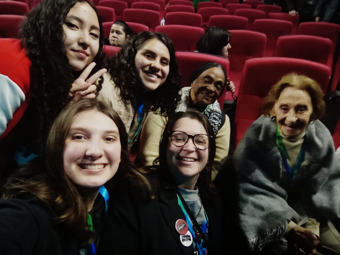 As jovens Bianca Fioreze, Aleciane Almeida Lopes, Júlia Bela Zamberlan e Maria Isabel Ribeiro Bertholdi, registraram o momento marcante com as atrizes.